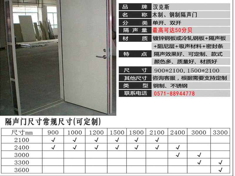 杭州漢克斯隔音門可完全定制,隔音門面板采用不銹鋼材質(zhì),有冷軋鋼板、電鍍鋅鋼板等材質(zhì)可選;不銹鋼隔音門的尺寸、彎管、開啟方式等都可以根據(jù)現(xiàn)場狀況定制;具有防火隔聲雙重效果,是很好的鋼制防火隔音門;降噪適應性好,啟閉靈活,可以滿足不同隔音量的要求。