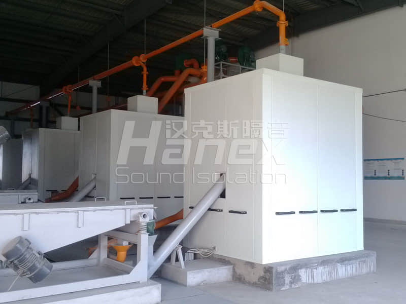 廠區(qū)車間內(nèi)4臺(tái)破碎機(jī)運(yùn)行時(shí)噪聲量達(dá)到120分貝,影響廠區(qū)環(huán)境和工人工作。漢克斯對每臺(tái)破碎機(jī)單獨(dú)設(shè)置隔聲罩后,距離設(shè)備一米處測得噪聲值為80分貝,低于國家衛(wèi)生標(biāo)準(zhǔn),符合降噪要求。隔聲罩內(nèi)具有通風(fēng)散熱照明功能,能夠保證內(nèi)部設(shè)備的正常運(yùn)行。
