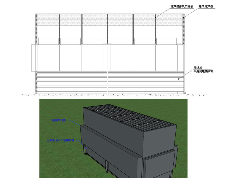 2、底部壓縮機(jī)四周安裝半封閉吸隔聲罩;