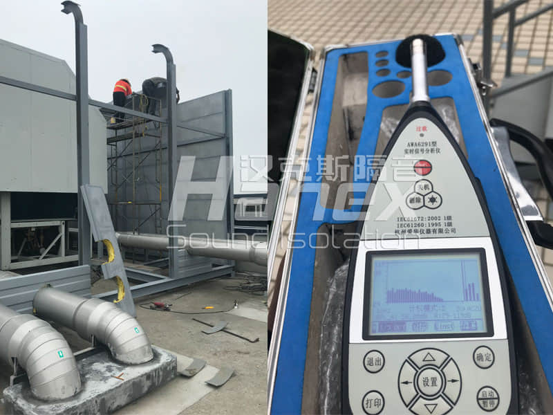 我們?cè)?jīng)在風(fēng)冷熱泵機(jī)組噪聲處理項(xiàng)目中,我們?cè)O(shè)計(jì)的降噪方案使未處理的風(fēng)冷熱泵機(jī)組噪聲值95dB,經(jīng)過(guò)降噪處理后,同一位置監(jiān)測(cè)噪聲值<65dB,取得了降噪30分貝的滿(mǎn)意結(jié)果。