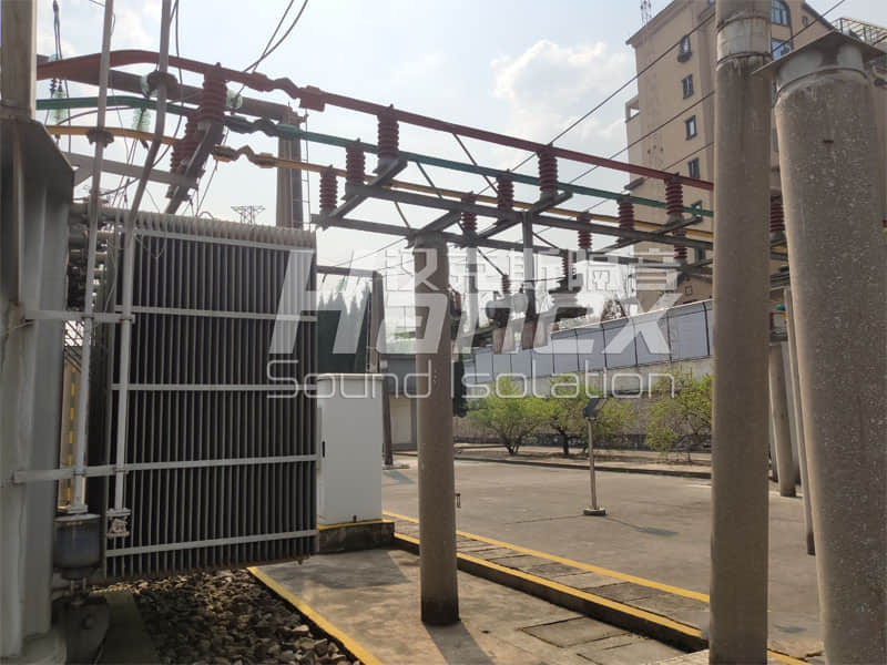 根據(jù)現(xiàn)場噪聲源值大小、頻譜、噪聲源與附近居民樓位置關系、設備通風散熱要求等因素,結(jié)合我們漢克斯隔音以往同類型項目分析,設計對該變電站采用2道U型屏障的方式進行降噪處理。