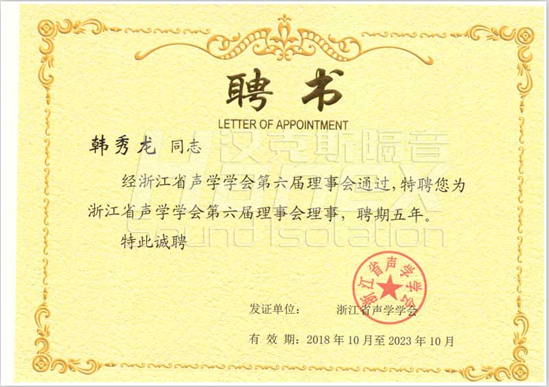 聲學學會理事聘書